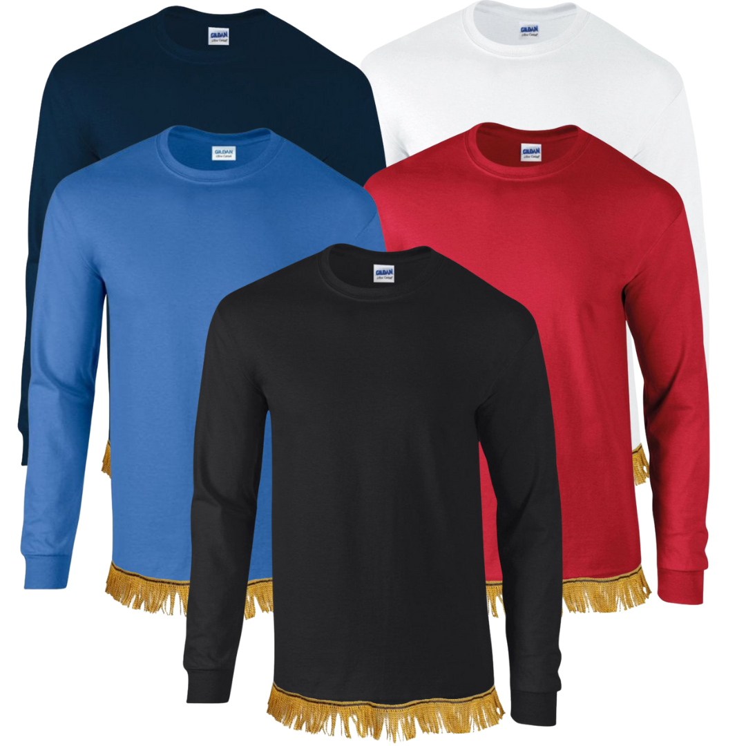 5 FRINGED LONG SLEEVE T-SHIRTS INCLUDED IN 1 SIZE OF CHOICE.