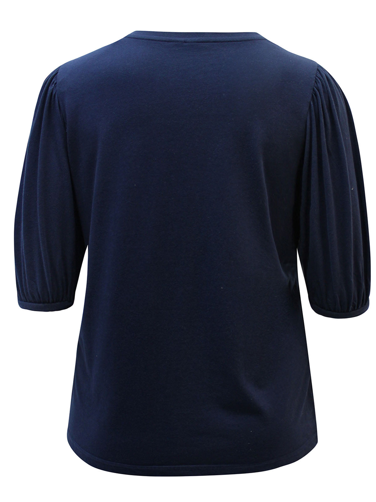 Women's Navy Pure Cotton Volume Sleeve Top with Fringes